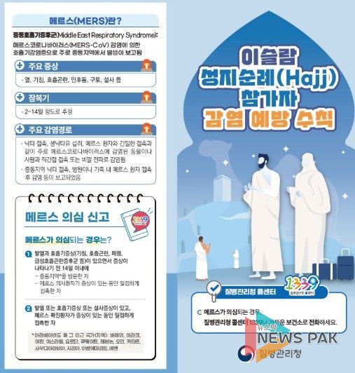 이슬람 성지순례(하지, Hajj)는 매년 수백만 명이 참여하는 대규모 행사로, 여러 국가 인파가 밀집하면서 호흡기 감염병과 수막구균 감염증 감염 위험이 높아질 수 있다. 특히 중동 지역에서는 메르스 발생이 이어지고 있어 철저한 예방이 필요하다.