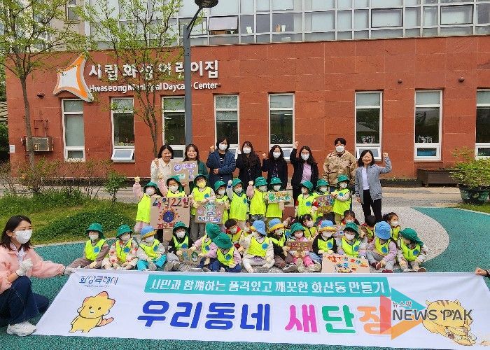 뉴스팍 류은정 기자 | 화성특례시 병점구 화산동은 22일 '지구의 날'을 맞아 관내 시립화성어린이집과 시립아름어린이집 원아들과 함께 환경정화활동 ‘우리동네 새단장’을 실시했다고 밝혔다.
