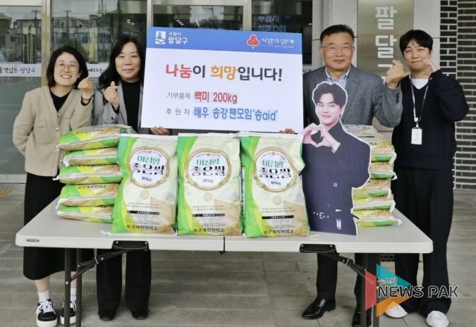 뉴스팍 배상미 기자 | 수원시 팔달구은 배우 송강 팬모임 ‘송aid’로부터 송강 배우의 생일(4월 23일)을 기념한 사랑의 백미 200kg을 전달받아 관내 취약계층 지원에 나선다고 밝혔다.