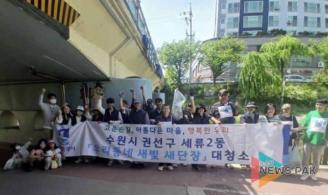 뉴스팍 배상미 기자 | 수원시 권선구 세류2동은 지난 19일 이주민이 참여하는 깨끗한 세류2동을 만들기 위해 수원이주민센터와 함께하는 ‘우리 동네 새빛 새 단장’을 실시했다.