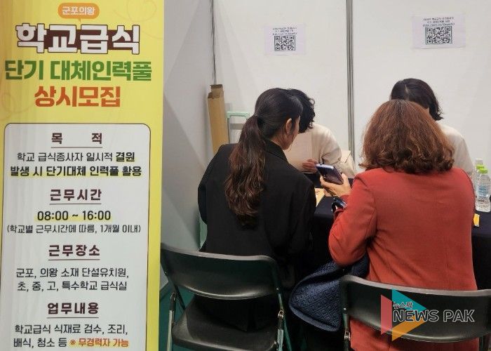 뉴스팍 배상미 기자 | 군포의왕교육지원청은 2026년 4월 23일 의왕국민체육센터 2층에서 군포·의왕 지역 학교급식 단기 대체인력풀 상시모집을 위한 홍보 행사를 실시했다.