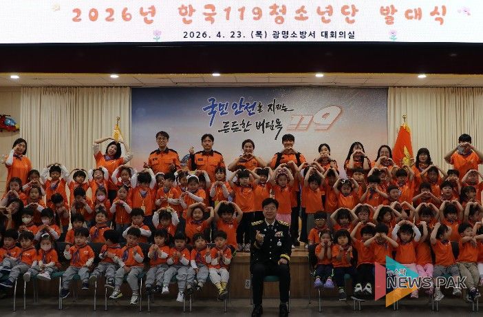 뉴스팍 배상미 기자 | 광명소방서는 4월 23일 본서 대회의실과 안전체험관에서 ‘2026년 광명소방서 119청소년단 발대식’을 개최했다.
