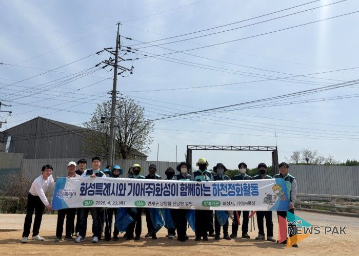 뉴스팍 류은정 기자 | 화성특례시는 23일 만세구 남양읍 신남리에 위치한 신남천 일원에서 지역 기업체와 함께하는 ‘2026년 상반기 하천정화활동’을 실시했다.