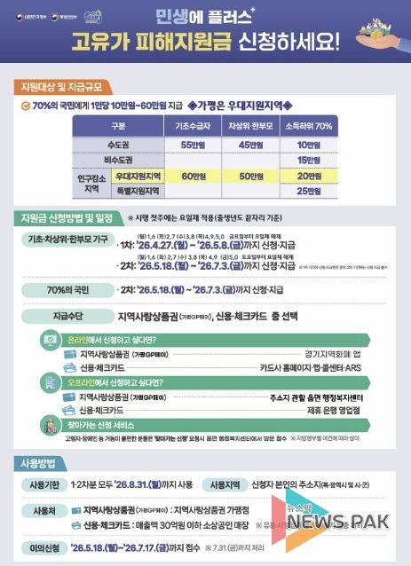 군 관계자는 “가평군은 인구감소 우대 지역으로 분류돼 지원 규모가 큰 만큼, 대상 군민들이 한 분도 빠짐없이 혜택을 받을 수 있도록 신청 안내와 현장 대응에 만전을 기하겠다”고 말했다.