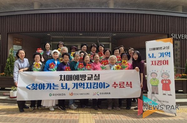 뉴스팍 이소율 기자 | 오산시보건소 치매안심센터는 지난 15일과 23일 지역 어르신들의 인지기능 향상을 위해 운영한 2026년 치매예방교실 ‘찾아가는 뇌, 기억지킴이’ 수료식을 성황리에 마쳤다고 밝혔다.