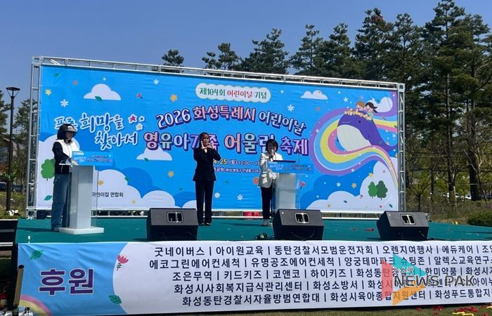 뉴스팍 류은정 기자 | 화성시어린이집연합회는 제104회 어린이날을 기념해 지난 25일 정조효공원에서 영유아 가족과 함께하는 ‘2026년 영유아가족 어울림축제’를 성황리에 개최했다.