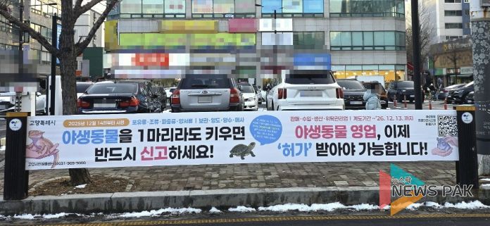 뉴스팍 배상미 기자 | 고양특례시는 2025년 12월 14일 이전부터 사육·보관 중인 야생동물에 대한 보관신고를 오는 6월 13일까지 완료해 줄 것을 당부했다.