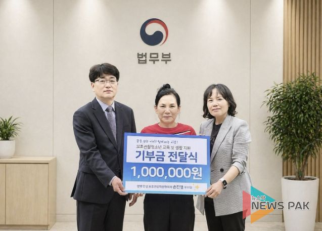 뉴스팍 이소율 기자 | 법무부 평택보호관찰소는 27일 ‘다중위기 보호관찰 청소년을 지원하기 위한 기부금 전달식’을 개최했다고 밝혔다.