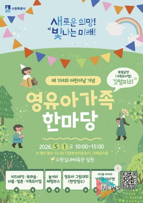 뉴스팍 배상미 기자 | 수원특례시는 5월 1일 10시부터 15시까지 수원체육관 일원에서 제104회 어린이날 기념 ‘영유아 가족 한마당’을 연다.