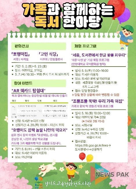 뉴스팍 배상미 기자 | 경기도교육청과천도서관이 5월 가정의 달을 맞아 ‘가족과 함께하는 독서 한마당’을 운영한다.