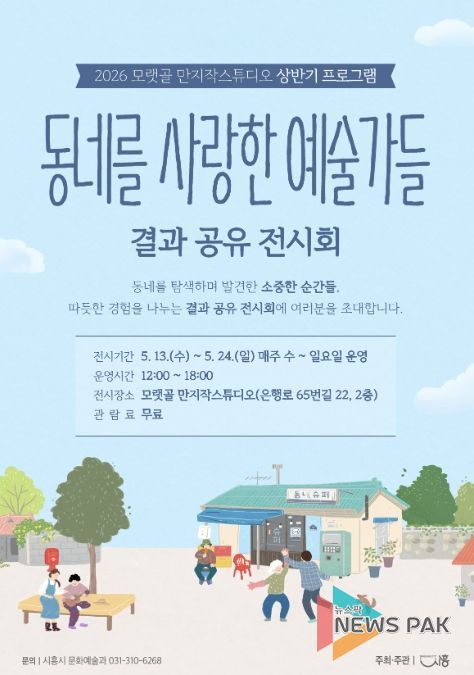 뉴스팍 배상미 기자 | 시흥시는 오는 5월 13일부터 24일까지 문화재생공간 모랫골 만지작스튜디오에서 2026년 상반기 프로그램 ‘동네를 사랑한 예술가들’ 결과 공유 전시를 개최한다.