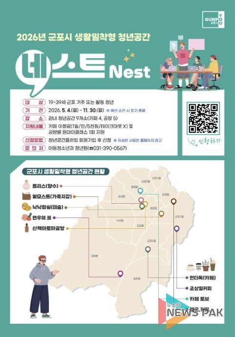 군포시 관계자는 “이번 협약을 계기로 민관 협력 청년생태계가 활성화될 수 있도록 더욱 노력하겠다”며 “청년공간 네스트를 통해 청년들이 자신만의 꿈을 향해 비상할 수 있도록 지원을 아끼지 않겠다”고 밝혔다.