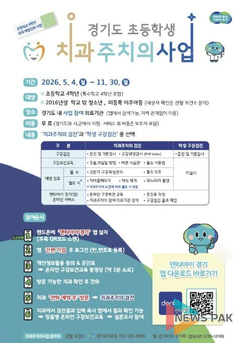 뉴스팍 배상미 기자 | 의왕시 보건소가 오는 5월 4일부터 11월 30일까지 ‘2026년 경기도 초등학생 치과주치의사업’을 시행한다.