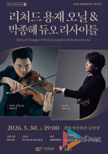 광명문화재단은 오는 5월 30일 오후 7시 광명시민회관에서 ‘리처드 용재 오닐&박종해 듀오 리사이틀’을 개최한다.