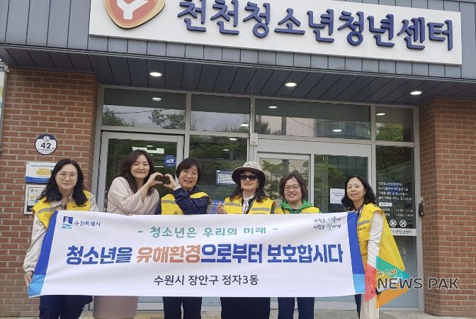 뉴스팍 배상미 기자 | 수원시 장안구 정자3동은 지난 29일, 천천청소년청년센터와 함께 청소년 보호 합동 캠페인을 펼쳤다.