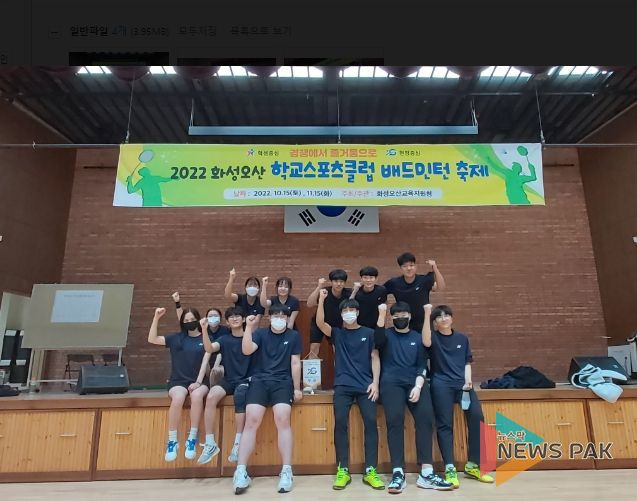 뉴스팍 이지율 기자 | 경기도 화성 소재 정현고등학교는 11월 5일 화성 이산고등학교 체육관에서 개최된 2022학년도 화성·오산 학교스포츠클럽 축제 고등부 배드민턴 부문에서 우승의 쾌거를 이뤘다.