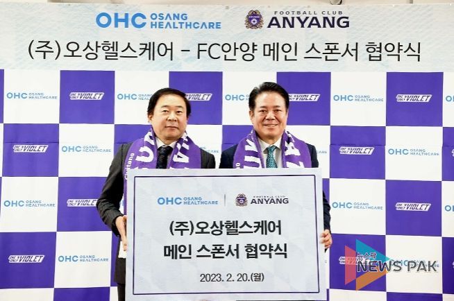 뉴스팍 최태문 기자 | ‘시민과 함께하는 100년 구단’ FC안양(구단주 최대호 안양시장)이 ㈜오상헬스케어(회장 이동현)와 메인스폰서 공식 후원 계약을 체결했다.