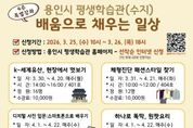 뉴스팍 배상미 기자 | 용인특례시는 25일부터 26일까지 수지구에 있는 용인시 평생학습관에서 특별강좌 수강생을 모집한다고 17일 밝혔다. 이번 특별강좌는 4주 과정으로, 시민의 수요를 반영해 실생활에 도움이 되는 다양한 강좌로 구성됐다. 총 8개 강좌를 운영하며 112명의 수강생을 모집한다. 주요 프로그램은 ▲인문교양 분야(K-세계유산, 현장에서 멋보기) ▲뷰티 분야(체형 진단 패션스타일 찾기) ▲정보화 분야(디지털 사진 입문: 스마트폰으로 배우기) ▲조리 분야(우리 집 김치 만들기) ▲문화예술 분야(쉽고 편한 보컬 발성법 야간) 등이다. 교육은 3월 30일부터 4월 24일까지 진행되며 만 19세 이상 용인시민이라면 누구나 신청할 수 있다. 용인에 주소를 둔 재외국민, 결혼이민자, 용인 소재 기업에 재직 중인 직장인도 참여 가능하다. 접수는 용인시 평생학습관 누리집을 통해 선착순으로 진행된다. 수강료는 강좌별 수업 시간에 따라 1만 원에서 1만 5000원이며, 재료비는 별도로 개인이 부담한다. 시 관계자는 “시민이 배움의 가치를 느낄 수 있도록 실생활에 도움이