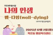 뉴스팍 배상미 기자 | 광명시 학온동 주민자치회는 오는 12월 2일부터 매주 화요일과 목요일 오후 2시부터 4시까지 총 4회에 걸쳐 ‘웰다잉 교육’을 진행한다. 교육은 학온동 행정복지센터 1층 소회의실에서 열리며, 주민의 삶의 질 향상과 노년기 준비를 돕기 위해 마련했다. 이번 교육은 고령화가 빠르게 진행되는 지역 특성과 주민 수요를 반영해 기획했다. 삶의 마무리를 준비하는 ‘웰다잉(Well-dying)’에 대한 이해를 높이고, 자신의 인생을 돌아보는 시간을 제공하는 데 중점을 둔다. 교육은 ▲웰다잉의 전반적인 이해 ▲유언장 및 인생노트 작성 ▲꿈꾸는 장례식과 장기 기증에 대한 이해 ▲버킷리스트 작성과 수료식으로 구성한다. 각 회차별로 워크북을 활용해 참여자가 스스로 삶을 성찰하고 노년을 준비할 수 있도록 돕는 것이 특징이다. 특히 ‘인생노트 작성’과 ‘꿈꾸는 장례식’ 프로그램은 그동안 막연하게만 생각해왔던 노년 준비를 구체적으로 계획하는 계기가 될 것으로 기대된다. 강후근 회장은 “이번 웰다잉 교육이 인생의 마침을 두려움이 아닌 준비의 과정으로 받아들이고, 삶의 의미를