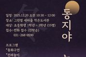 뉴스팍 배상미 기자 | 수원시 장안구 정자3동 그린빌새마을문고는 동지를 맞아 오는 20일 전통문화 등 다양한 프로그램을 체험할 수 있는 ‘동지야 놀자’ 행사를 개최한다고 밝혔다. 이번 행사는 오는 20일 오전 10시 30분부터 12시까지 도서관에서 진행되며, △동화구연 △작은음악회 △전래놀이 △팥죽나눔 등 다양한 프로그램이 마련됐다. 박혜경 그린빌새마을문고회장은 “이번 행사를 통해 우리 고유의 세시풍속을 자연스럽게 익히고 따뜻한 겨울 정을 느낄 수 있길 바란다”며 “앞으로도 지역 주민과 함께하는 작은도서관이 될 수 있도록 노력하겠다”고 말했다.