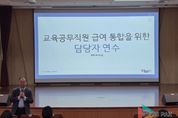 뉴스팍 배상미 기자 | 경기도교육청이 내년 전면 시행되는 교육공무직원 인건비 통합 관리에 발맞춰 31일 경기도교육복지종합센터 대강당에서 업무 담당자 100여 명을 대상으로 시범 운영 연수를 실시한다. 이번 연수는 전면 도입에 앞서 현재 이원화된 교육행정정보시스템(NEIS)과 지방교육재정시스템(K에듀파인)을 일원화하고 시범 운영해 업무 효율성 개선을 위한 사전 준비단계 일환으로 마련됐다. 주요 내용은 ▲통합 시스템 이해 ▲시범 운영 세부 사항 ▲실무 교육 ▲의견 수렴 등이다. 통합 시스템의 안정성을 점검하고 현장에서 발생할 수 있는 문제점을 사전에 파악하기 위한 필수 과정이다. 운영 계획안을 공유하고 통합 시스템의 구체적인 작동 원리와 시범 교육이 집중적으로 이뤄질 예정이다. 현재 교육공무직원의 급여 업무는 교육지원청에서 ‘NEIS’를 이용해 집계와 확인, 검증이 이뤄지고 ‘K에듀파인’에서 예산을 집행해 분리 운영 중이다. 일부 과정이 수동으로 진행돼 관련 담당자의 업무 부담이 크고 오류 가능성이 있었다. 이에 도교육청은 2026년도부터 전면 두 시스템을 연계시켜 급여 작업과 생성, 조회, 지급까지