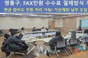 뉴스팍 배상미 기자 | 수원시 영통구가 지난 31일 시민의 민원 편익을 높이기 위해 FAX민원 수수료 결제방식을 전면 개선했다. 앞으로 사립대학교 졸업증명서 등 FAX민원 발급 시에도 현금 외에 가상계좌를 통한 납부가 가능해져, 현금 미소지로 인한 불편이 크게 줄어들 전망이다. 기존에는 주민등록등본, 인감증명서 등 일반 제증명 수수료는 카드나 현금 결제가 가능했지만, FAX민원 중 사립대학 졸업증명서·성적증명서·재학증명서 등은 현금으로만 수납이 가능해 민원인의 불만이 꾸준히 제기됐다. 특히 정부24를 통해 대학 민원을 신청한 뒤 기관을 방문하는 시민 중 카드만 소지한 비율이 50% 이상으로, 현금 결제로 인한 불편 사례가 빈번했다. 이에 영통구는 종합민원과 및 12개 동 행정복지센터 FAX민원 담당자 회의를 열고 ‘세입세출외현금납부(가상계좌) 매뉴얼’을 공유했다. 담당자 의견을 수렴해 시스템 적용 방안을 논의한 결과, 가상계좌를 활용한 결제 절차를 마련해 현금 없이도 민원수수료 납부가 가능하도록 했다. 이번 개선으로 모든 FAX민원 제증명 수수료를 현금, 카드, 가상계좌를 통해 납부할 수 있게 되면서, 민원인