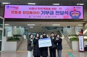 뉴스팍 배상미 기자 | 수원 영통중학교 창업동아리 학생들이 창업 활동 수익금을 모아 수원시 취약계층 시민을 위해 기부했다. 1월 29일 수원시청 본관 1층 로비에서 열린 기부금 전달식에는 윤영숙 시민복지국장, 영통중학교 창업동아리 학생 등이 참석했다. 학생들은 직접 디자인·제작한 탁상용 달력 100개를 판매해 마련한 수익금 45만 원을 수원시에 전달했다. 수원시는 기부금을 취약계층 시민 지원을 위해 사용할 예정이다. 영통중학교 창업동아리 학생들은 “작은 나눔이지만 어려운 이웃들에게 도움이 되기를 바라는 마음으로 기부에 참여했다”며 “직접 만든 작품으로 나눔을 실천할 수 있어 기쁘다”고 소감을 밝혔다. 윤영숙 시민복지국장은 “학생들이 활동 수익금으로 이웃사랑을 실천한 모습이 대견하다”며 “따뜻한 나눔이 지역사회 전반으로 확산되기를 바란다”고 말했다.
