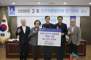 뉴스팍 배상미 기자 | 수원시 장안구 대표 봉사단체 장안사랑발전회가 지난 19일, '2026 만석거 새빛축제'의 성공적인 개최를 응원하며 지원금 200만원을 전달했다. '2026 만석거 새빛축제'는 4월 3일부터 12일까지 열흘에 걸쳐 진행되며 새빛콘서트, 초청공연, 주민자치센터 동아리 경연대회 등 무대공연과 드론쇼·불꽃놀이 등 볼거리가 펼쳐질 예정이다. 또한 주민들이 참여할 수 있는 홍보·체험부스, 먹거리장터 등도 운영된다 장안사랑발전회 박충규 회장은 “만석거 새빛축제가 많은 구민들이 함께 즐기는 뜻깊은 축제가 되길 바라며, 앞으로도 지역 발전과 나눔 활동에 지속적으로 함께 하겠다”고 말했다. 이일희 장안구청장은 “축제 준비에 힘을 보태주신 장안사랑발전회에 감사드린다”며 “만석거 새빛축제가 구민 모두가 함께 즐기는 풍성한 축제가 될 수 있도록 최선을 다해 준비하겠다”고 말했다.