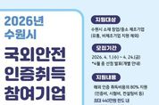 뉴스팍 배상미 기자 | 수원특례시가 관내 중소기업이 국외 안전인증 취득하는 데 소요되는 비용을 지원한다. 수원시는 24일까지 ‘2026년 국외 규격인증 취득 지원사업’에 참가할 창업·중소·제조기업 8개 업체를 모집한다. 인증비·시험비·컨설팅비 등 안전인증 취득에 필요한 총비용의 80%를 실비로 지원한다. 기업당 최대 2개 제품의 인증 취득을 지원하고, 지원 한도는 기업당 440만 원이다. 지원 분야는 미국 안전인증(UL·FCC·FDA), 유럽 안전인증(CE) 등 436개 규격이다. 제품안전인증이 아닌 아이에스오(ISO) 인증은 제외된다. 수원시 관계자는 “중소제조기업에게는 국외 안전인증을 취득하는 과정이 수출 장벽처럼 느껴질 정도로 쉽지 않다”며 “기업이 교역 대상국의 안전 규제에 선제적으로 대응할 수 있도록, 국외 안전인증 취득을 지원하겠다”고 말했다.