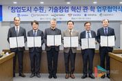 뉴스팍 배상미 기자 | 수원특례시가 경기창조경제혁신센터, 4개 대학과 협력해 대학의 기술창업을 발굴하고, 지원한다. 수원시와 경기창조경제혁신센터, 4개 대학은 30일 시청 상황실에서 ‘창업도시 수원 기술창업 혁신 관·학 업무협약’을 체결하고, 협력을 약속했다. 협약 기관들은 대학의 우수한 연구 성과, 인적 자원을 보유한 우수 기술창업기업을 발굴하고, 기술의 사업화를 촉진하기 위해 협력하기로 했다. 수원시는 수원기업새빛펀드의 수원기업 의무투자 약정액으로 투자를 유치하고, 경기창조경제혁신센터는 기업에 멘토링, 엑셀러레이팅(스타트업이 빠르게 성장하도록 지원), 밋업(투자자 유치 행사), 아이알(IR)데이, 투자 등을 지원한다. 대학교는 실험실 창업·창업 보육기업을 추천한다. 이날 협약을 바탕으로 대학창업 특화 프로그램인 ‘새빛 유-테크(U-Tech).판’을 시작한다. 경기창조경제혁신센터의 엑셀러레이팅 인프라를 활용해 우수한 기술력과 성장 잠재력을 갖춘 창업기업을 발굴하고, 기업의 투자 유치 역량을 극대화하는 프로그램이다. 3대 핵심 목표는 ‘인프라 적극 활용’, ‘선순환 구조 구축’, ‘실질적 투자 집