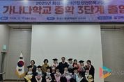뉴스팍 류은정 기자 | 화성특례시는 17일 화성시평생학습관에서 ‘2025년 학력인정 성인문해교실 가나다학교 졸업식’을 개최했다. 학력인정 성인문해교실 가나다학교는 사회적·경제적 이유로 학령기 배움의 기회를 놓친 만 18세 이상 비문해·저학력자를 대상으로 문해 교육을 진행하는 프로그램이다. 시는 지난 2020년 12월에 교육부 학력 인정 문해교육 프로그램 운영 기관으로 지정된 이후 학력 인정 성인문해교육을 운영하고 있으며, 올해는 지난 3월 4일부터 12월 11일까지 연 450시간의 교육과정으로 진행됐다. 시는 지난 2022년 초등 3단계 졸업생 15명, 2024년 초등 3단계 졸업생 11명을 배출한 데 이어, 올해는 처음으로 중학 3단계 졸업생 11명을 배출했다. 또한, 중학 1단계는 8명이, 초등 1단계는 9명이 수료했다. 졸업식에서는 학습자 및 가족, 강사들이 참석한 가운데, 중학과정을 마친 졸업생들에 대한 졸업장과 상장 수여, 모범 졸업생 경기도교육감 표창장 수여 등이 진행돼 학습자들의 성과를 함께 축하하고 졸업의 기쁨을 나누는 시간을 가졌다. 학습자 대표는 “가나다학교가 없었다