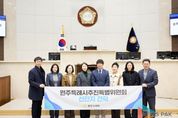 뉴스팍 배상미 기자 | 용인특례시의회는 30일 의장실에서 원주시의회 원주특례시추진특별위원회의 방문을 받고 특례시 추진 및 운영 사례를 공유하는 시간을 가졌다고 밝혔다. 이번 방문은 특례시 추진을 준비 중인 원주시의회가 용인특례시의회의 제도 운영 경험과 의회 조직·권한 구조를 벤치마킹하기 위해 마련됐다. 용인특례시의회에서는 유진선 의장을 비롯해 이윤미 의회운영위원장, 김희영·이진규·기주옥 의원이 참석했으며, 용인특례시 자치분권과 관계자들도 함께했다. 원주시의회 원주특례시추진특별위원회에서는 손준기 위원장과 최미옥·문정환 의원 등 관계자들이 참석했다. 이날 일정은 상호 소개를 시작으로 ▲특례시 운영 현황 및 제도적 기반에 대한 설명 ▲특례시 추진 과정과 의회 역할 공유 ▲의회 시설 견학 순으로 진행됐다. 특히, 참석자들은 ‘지방자치법’과 ‘지방자치분권 및 지역균형발전에 관한 특별법’ 등 특례시 관련 법령 체계, 인구 100만 이상 대도시의 행·재정 수요 증가에 따른 특례시 도입 배경과 필요성, ‘특례시의회 사무기구 구성과 정책지원 전문인력 운영 사례 등에 대해 심도 있는 의견을 나눴다. 용