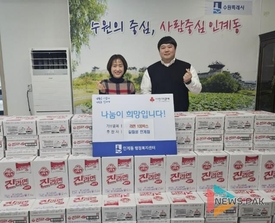 길림성 인계점, 수원시 팔달구 인계동에 설맞이 라면 100박스 전달