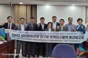뉴스팍 배상미 기자 | 경기도의회 의원연구단체인 DMZ생태평화관광 연구회는 지난 19일 경기도의회 도시환경위원회 회의실에서 '커먼즈 관점에서 본 DMZ와 배후지의 지속가능한 협력 거버넌스 모델 개발 연구' 용역 중간보고회를 개최했다. 이날 보고회에는 오준환 회장을 비롯해 윤종영 의원, 김호겸 의원, 서광범 의원, 윤태길 의원, 김옥순 의원, 방성환 의원, 김창식 의원, 이채명 의원 등이 참석해 성황을 이뤘다. 오준환 회장은 “연천군과 고양시에서 두 차례에 걸쳐 FGI를 진행해본 결과 주민들의 반응이 긍정적이었다”면서도, “더 많은 표본을 확보해 결과의 신뢰성을 높이는 방안이 필요하다”고 강조했다. 이어 오 회장은 “이번 연구가 고양·파주·김포·연천·포천 등 DMZ 배후지를 중심으로 지속가능한 공동자산 관리체계와 거버넌스 방향을 제시하는 의미 있는 성과로 이어지길 바란다”며, “지역사회 기반의 관광 개발을 통해 배후지 경제 활성화, 고용 창출, 그리고 지역경제의 다변화에 기여하는 계기가 되길 기대한다”고 밝혔다. 용역수행기관인 협동조합 자연과공생연구소 윤여창 이사장은 중간보고에서 “착수보고 이후 연