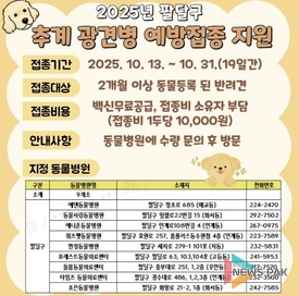 수원시 팔달구, 추계 반려동물 광견병 백신 지원