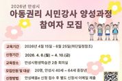 뉴스팍 배상미 기자 | 안성시는 아동친화도시로서 아동권리 인식 확산과 시민강사 양성을 위해 '아동권리 시민강사 양성과정' 참여자를 모집한다. 이번 과정은 아동권리에 대한 지역사회 인식을 확산하고, 관련 교육을 수행할 시민강사를 양성함과 동시에 중장년층의 사회참여 기회를 확대하기 위해 마련됐다. 교육은 2026년 4월 15일부터 6월 25일까지 운영되며, 총 11회차에 걸쳐 집합교육과 자율학습을 병행하여 진행된다. 모집 대상은 안성시에 거주하는 40세부터 64세까지의 중장년 시민 20명이다. 교육신청은 4월 6일부터 10일까지 안성시평생교육통합플랫폼(안성배움e)를 통해 접수한 후, 별도의 신청서를 이메일로 제출하면 된다. 교육대상자는 신청서를 바탕으로 참여 의지와 지원동기 등을 종합적으로 평가해 선발할 예정이다. 교육과정은 ▲아동권리 및 인권 기초 이해 ▲유엔아동권리협약의 이해 ▲긍정적 훈육 ▲아동인권 교육 프로그램 설계 등 이론과 실습을 병행하는 체계적인 내용으로 구성된다. 수료자는 민간자격인 ‘아동인권옹호전문가 2급’ 자격시험에 응시할 수 있으며, 향후 관내 초·중학교와