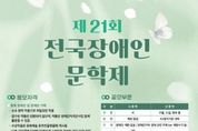 뉴스팍 배상미 기자 | 고양시장애인종합복지관은 3월 19일까지 전국의 장애인 및 장애인 가족을 대상으로 ‘제21회 전국장애인문학제’ 작품 접수를 진행한다. 올해로 21회를 맞이하는 전국장애인 문학제는 장애인과 장애인 가족들이 주체적으로 자신의 이야기를 글로 표현하며 창작 활동에 참여할 수 있도록 마련된 자리다. 이번 문학제에서는 총 29명의 수상자를 선정할 예정이며, 총상금은 950만 원 규모다. 접수된 작품은 공정한 심사를 거쳐 수상작을 선정하며, 심사 결과는 4월 1일 발표될 예정이다. 시상식은 4월 22일 고양시장애인종합복지관에서 진행되며, 수상자들에게 상장과 상금이 수여된다. 또한 수상작은 문화예술플랫폼에 게시하여 수상자의 작품을 소개하고, 장애인 문학 작품을 대중에게 널리 알릴 예정이다. 고양시장애인종합복지관은 앞으로도 장애인이 주체적으로 문화예술 활동에 참여할 수 있는 기회를 확대하고, 창작 활동이 일회성으로 끝나지 않고 지속될 수 있도록 다양한 지원을 이어갈 계획이다. 문학제와 관련한 자세한 사항은 고양예술누리 누리집(홈페이지)에서 확인할 수 있으며, 스마트복지기획팀으로
