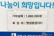뉴스팍 배상미 기자 | 지난 17일, 명성환경(주)은 추석 명절을 맞이하여 어려운 이웃에게 전달해 달라며 성금 100만원을 경기사회복지공동모금회를 통해 영통1동에 기탁했다. 명성환경(주)은 수원시 청소 대행업체로서 수원시와 협력협력하여 관내 마을의 쾌적한 생활환경 조성에 힘쓰고 있으며, 지역사회에 따뜻한 나눔을 지속적으로 실천해오고 있다. 한편, 이번 성금은 사회복지공동모금회를 통해 지역 내 취약계층을 위한 영통1동 이웃돕기 특화사업에 사용하여 추석을 앞두고 따뜻한 나눔의 의미를 더할 예정이다. 영통1동 신한길 동장은 "매번 명절마다 이웃을 위해 따뜻한 나눔을 실천해주셔서 감사드리며, 도움이 필요한 가정에 소중히 잘 전달하겠다”고 전했다.