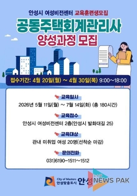 안성시 여성비전센터, 공동주택 회계 관리사 양성과정 직업훈련생 모집