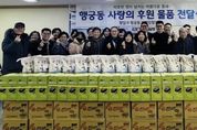 뉴스팍 배상미 기자 | 수원시 팔달구 행궁동은 지난 6일 설 명절을 맞아 ‘행궁동 사랑의 후원 물품 전달식’을 개최했다. 이번 전달식에는 설 명절을 앞두고 행궁동 취약계층을 위해 후원 물품을 기부한 행궁동 주민자치회를 비롯한 단체장들과 후원자들이 참석해 이웃 나눔의 의미를 함께 했다. 행궁동은 설 명절 이웃돕기를 위해 2월 5일까지 후원 물품을 접수한 결과 종교기관과 개인 후원자, 기업 등의 참여로 백미 10kg 200포와 라면 등 120박스를 후원받았다. 후원 물품은 관내 복지사각지대 및 저소득 가정에 전달될 예정이다. 전달식에 참석한 박영순 주민자치회장 등 행궁동 단체장들은 “명절마다 이어지는 나눔이 어려운 이웃에게 작은 위로가 되길 바란다”며 “앞으로도 지역사회 나눔 문화 확산에 적극 동참하겠다”고 전했다. 최영희 행궁동장은 “설 명절을 맞아 따뜻한 마음으로 후원에 동참해 주신 분들게 깊이 감사드린다”며, “지역의 소중한 복지자원과 이웃에 대한 관심이 촘촘한 복지행정을 실천하는 큰 힘이 되고 있으며, 후원해 주신 물품은 도움이 필요한 가정에 정성껏 전달하겠다”고 말했다.