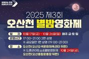 뉴스팍 이소율 기자 | 오산시는 오는 10월 17일부터 26일까지 매주 금·토·일 저녁, 오산천(오색문화체육센터 뒤편)에서 시민들이 야외에서 영화를 즐길 수 있는 '2025 제3회 오산천 별밤영화제'를 개최한다고 밝혔다. 이번 영화제는 남녀노소 누구나 즐길 수 있는 총 10편의 애니메이션과 영화를 상영하며, 오산천을 방문하는 시민이라면 누구나 자유롭게 관람할 수 있다. 특히 올해는 관람객 편의를 위해 ‘배달음식 픽업존’을 운영하여, 휴대폰 앱으로 주문한 음식을 지정된 장소에서 간편하게 수령할 수 있다. 관람객들은 돗자리나 방석 등을 지참해, 자연 속에서 맛있는 음식과 함께 여유로운 영화 관람을 즐길 수 있다. 시 관계자는 “도심 속 자연과 문화가 조화를 이루는 오산천에서 열리는 이번 별밤영화제가 시민들에게 힐링과 특별한 문화 체험의 기회가 되길 바란다”고 전했다.
