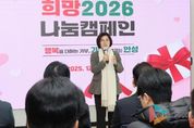 뉴스팍 배상미 기자 | 안성시는 12월 4일 경기 사회복지공동모금회와 함께 ‘희망 2026 나눔캠페인’ 행사를 열고, 연말연시 따뜻한 나눔 분위기 확산에 나섰다. 이날 행사에는 김보라 안성시장을 비롯하여 경기 사회복지공동모금회 김효진 사무처장 및 관계자, 그리고 지역 내 주요 기부 참여 기업인 ㈜그랜드썬기술단에스피, 한솔아이원스(주), ㈜삼양컴텍, 한일크린에너지(주), 골프클럽큐레저산업(주) 등 기업인들이 함께해 자리를 빛냈다. ‘희망 2026 나눔캠페인’은 2025년 12월 1일부터 2026년 1월 31일까지 두 달간 진행되며, 안성시의 모금 목표액은 5억 원이다. 시민과 지역 기업이 정성으로 모은 성금과 물품은 관내 어려운 이웃에게 전달될 예정이다. 행사 주요 내용으로는 캠페인 소개를 시작으로 ‘사랑의 온도탑 제막식’과 ‘명사 열매달기’ 행사가 진행됐으며, 이어 기부금(품) 전달식이 열려 본격적인 나눔캠페인의 출발을 알렸다. 김보라 안성시장은 “이번 ‘희망 2026 나눔캠페인’을 통해 따뜻한 나눔의 가치가 지역사회 전반에 퍼지길 바란다”며 “시민 모두가 동참해 어려운 이웃과 온정을 나누는 시간