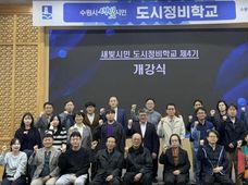 뉴스팍 배상미 기자 | 수원특례시는 23일 시청 중회의실에서 제4기 수원시 새빛시민 도시정비학교 개강식을 열었다. 새빛시민 도시정비학교는 수원시 도시정비를 활성화하기 위해 도시정비사업의 주체인 시민들의 역량을 강화해 도시정비 시민 전문가를 양성하는 프로그램이다. 제4기 도시정비학교는 10월 23일부터 11월 27일까지 매주 목요일 수원 기업지원센터 대회의실에서 총 6주 과정으로 진행된다. 교육생은 수원시민 35명이다. 전문 강사진이 정비사업 관련 기초·실무 핵심 내용을 알기 쉽게 설명한다. ▲정비사업의 개요, 제도 이해 ▲추진 절차 ▲조합 설립 ▲사업시행계획 수립 등 도시정비사업 관련 내용을 교육한다. 교육 수료자에게는 수료증 교부, 도시정비 분야별 무료 상담 지원, 재개발·재건축 후보지 공모 시 인센티브 부여 등 특전을 제공한다. 수원시 관계자는 “새빛시민 도시정비학교는 도시정비사업의 주체인 시민들이 스스로 전문성을 갖추고 사업에 주도적으로 참여할 수 있는 역량을 키워주는 교육 프로그램”이라며 “수강생들이 도시정비사업의 전반적인 흐름과 절차를 정확하게 이해하고, 실질적인 역량을 갖추