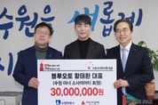 뉴스팍 배상미 기자 | 황태환 블루오토 대표가 12월 31일 “취약계층 아동 지원에 사용해달라”며 3000만 원을 수원시에 기부했다. 수원시는 경기사회복지공동모금회 지정기탁 방식으로 후원금을 취약계층 아동 지원에 사용할 예정이다. 수원시청에서 열린 기부금 전달식에는 김현수 수원시 제1부시장, 황태환 블루오토 대표, 김효진 경기사회복지공동모금회 사무처장 등이 참석했다. 황태환 블루오토 대표는 “기부금이 도움이 필요한 아동에게 보탬이 되길 바란다”며 “지역사회의 이웃을 위한 나눔 활동을 꾸준히 이어가겠다”고 말했다. 김현수 제1부시장은 “수원시에 관심을 기울여주시고, 소중한 나눔을 실천해 주신 블루오토에 진심으로 감사드린다”며 “보내주신 따뜻한 마음은 도움이 필요한 취약계층 아동에게 큰 희망과 용기가 될 것”이라고 밝혔다.